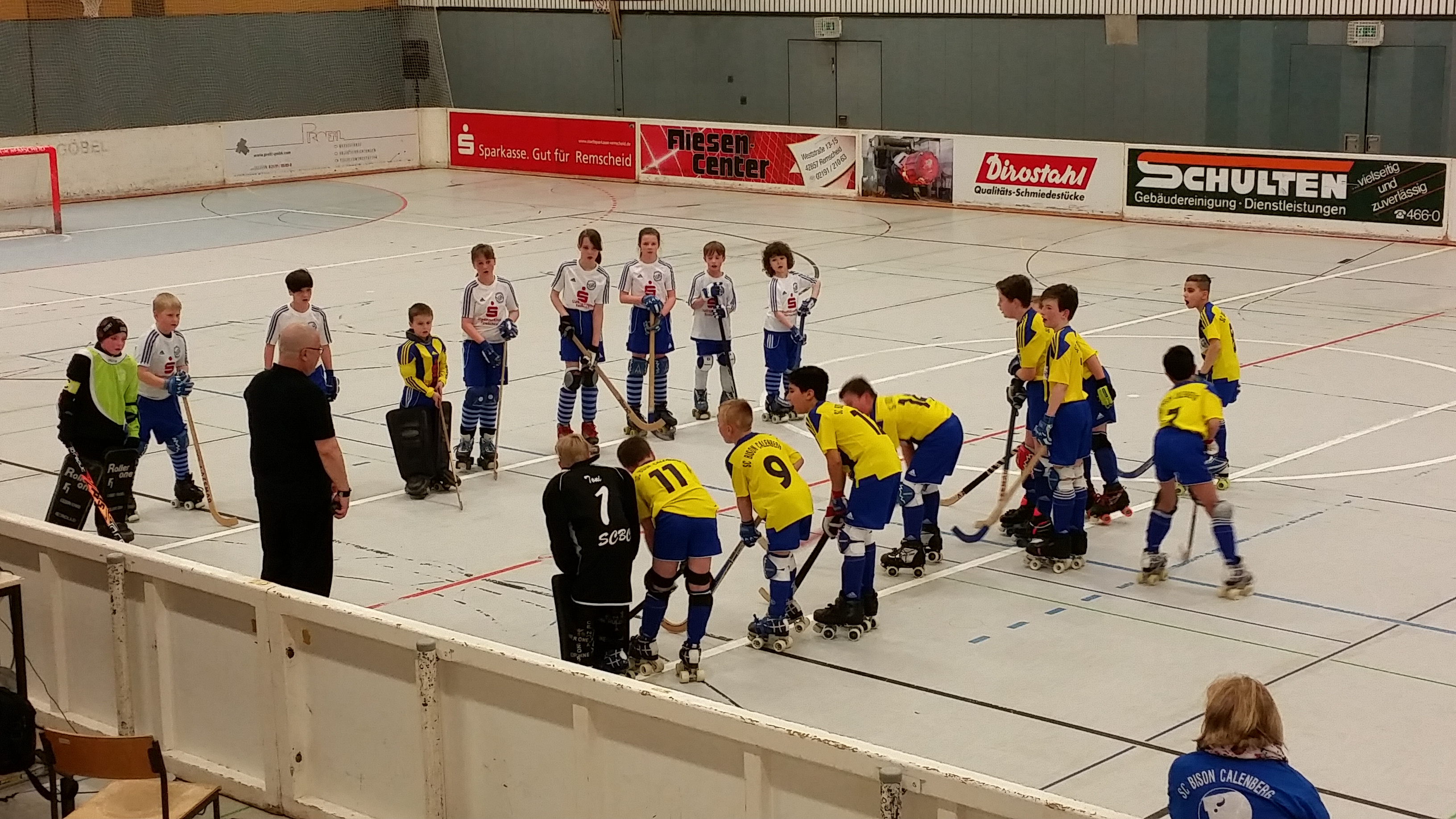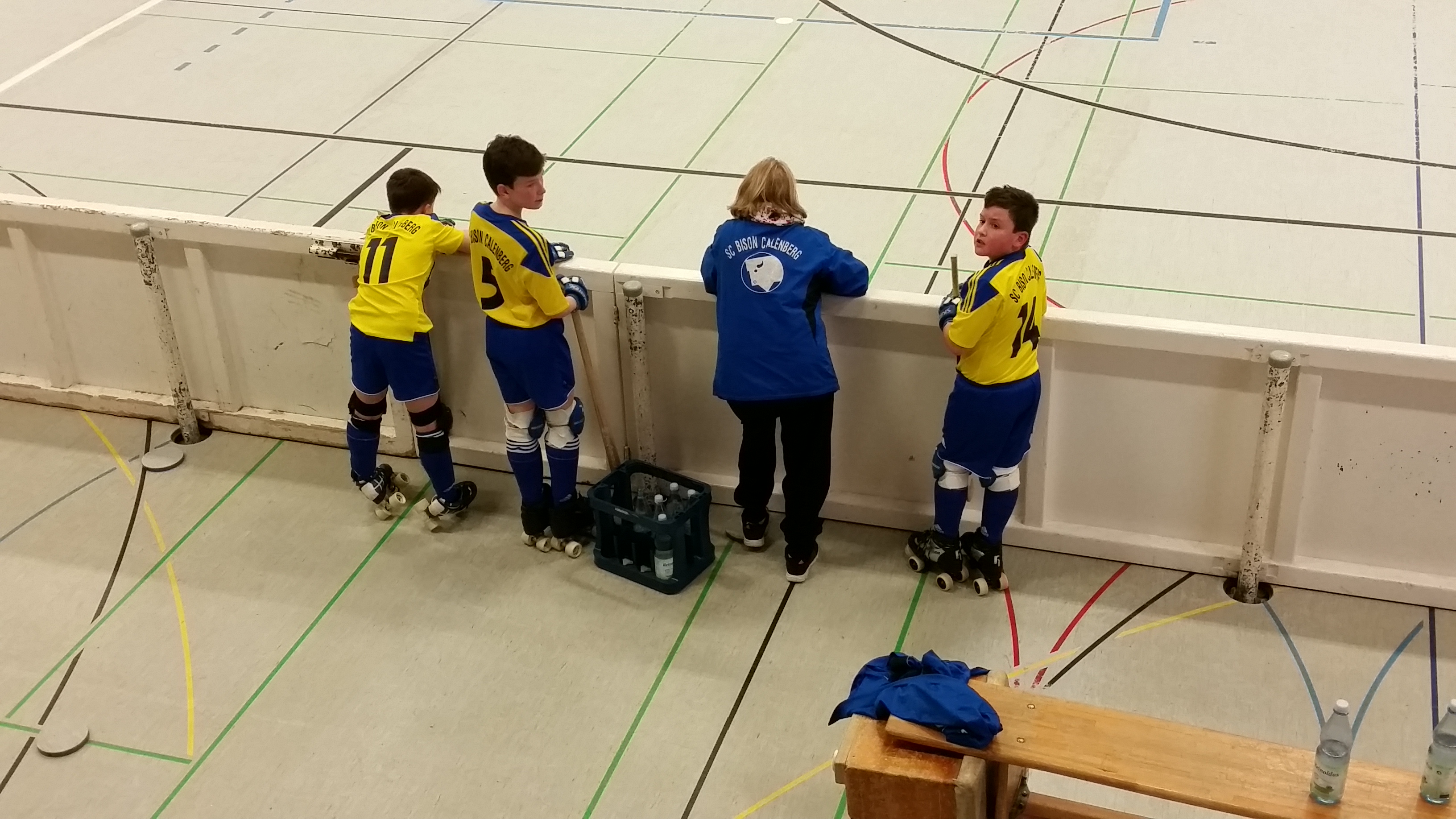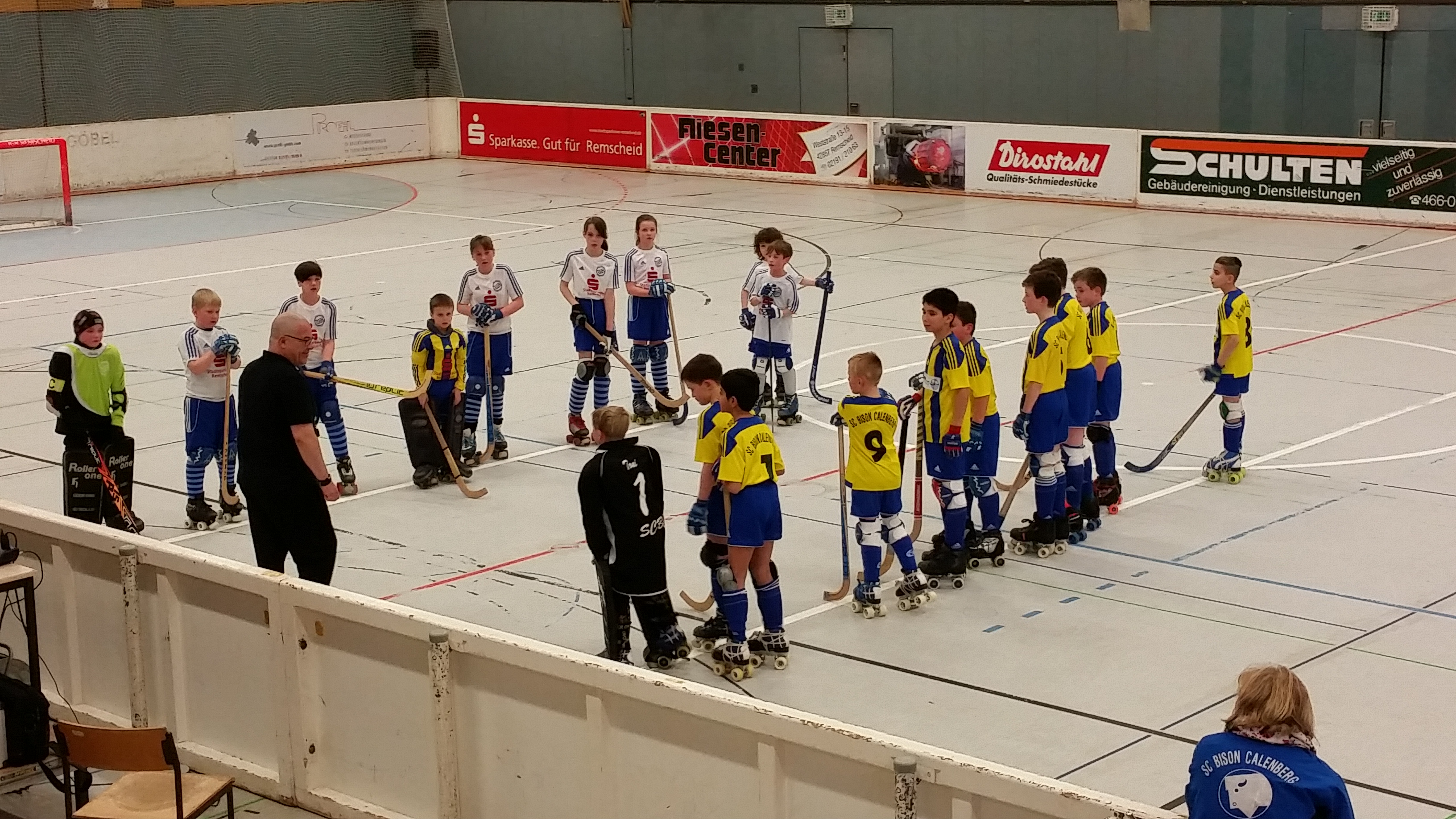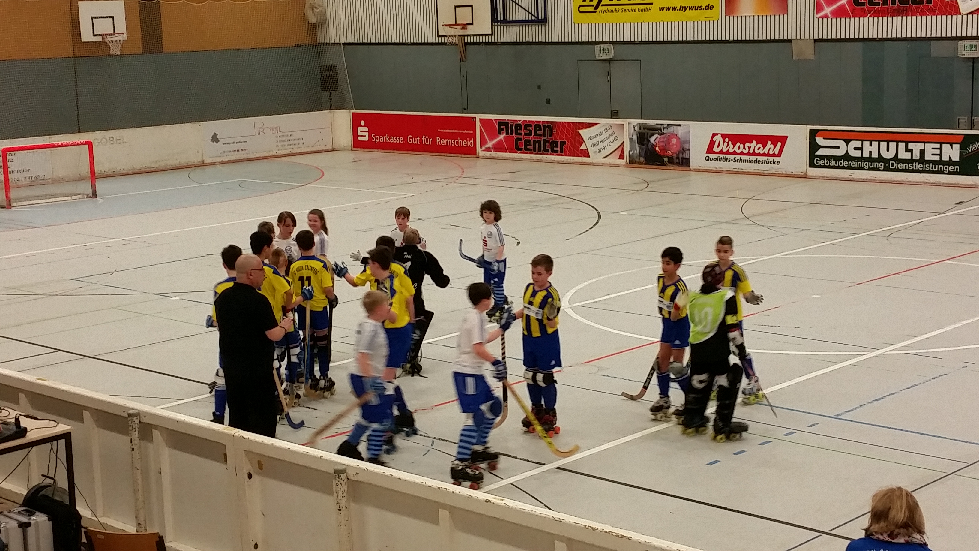 U11/13 «zurück zum AlbumU11/U13 Freundschaftsspiel Remscheid 11.01.2017 Taktikbesprechung vor dem Spiel.Der Torwart war heute recht wenig beschäftigt.Spieler und Zuschauer.Volle Aktion.Gleich geht's los.Volle Aktion.AuswechselspielerGespannt dabei.Bei der Auswechselung.Abgrüßen nach dem Spiel.Abgrüßen nach dem Spiel.Abklatschen nach dem Spiel ist Pflicht.Nach dem gewonnenen Spiel sind alle stolz.Nach dem gewonnenen Spiel sind alle stolz.Anfeuerung aus dem Publikum.Auch nach dem Spiel wurde geübt.Auch nach dem Spiel wurde geübt.Auch in der Pause wurde geübt. http://www.bison-rollhockey.de/wp-content/uploads/2017/03/VID-20170311-WA0002.mp4 http://www.bison-rollhockey.de/wp-content/uploads/2017/03/VID-20170312-WA0000.mp4 http://www.bison-rollhockey.de/wp-content/uploads/2017/03/VID-20170311-WA0001.mp4