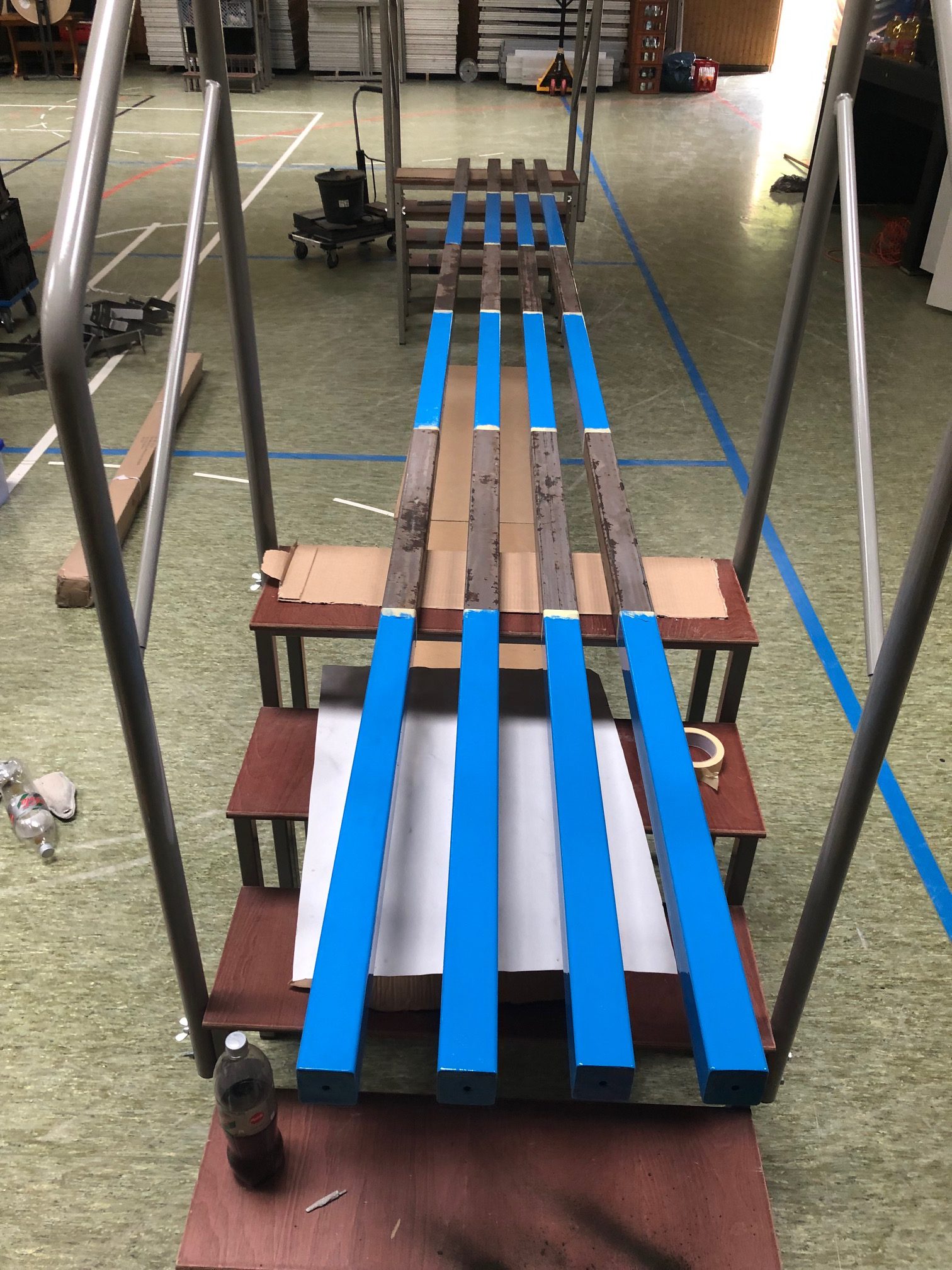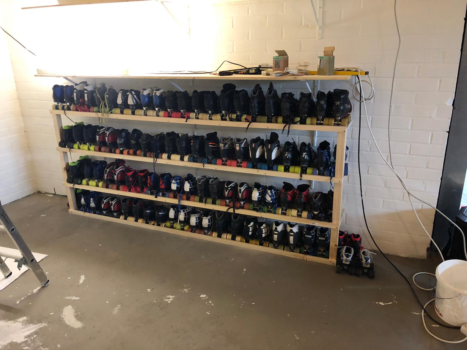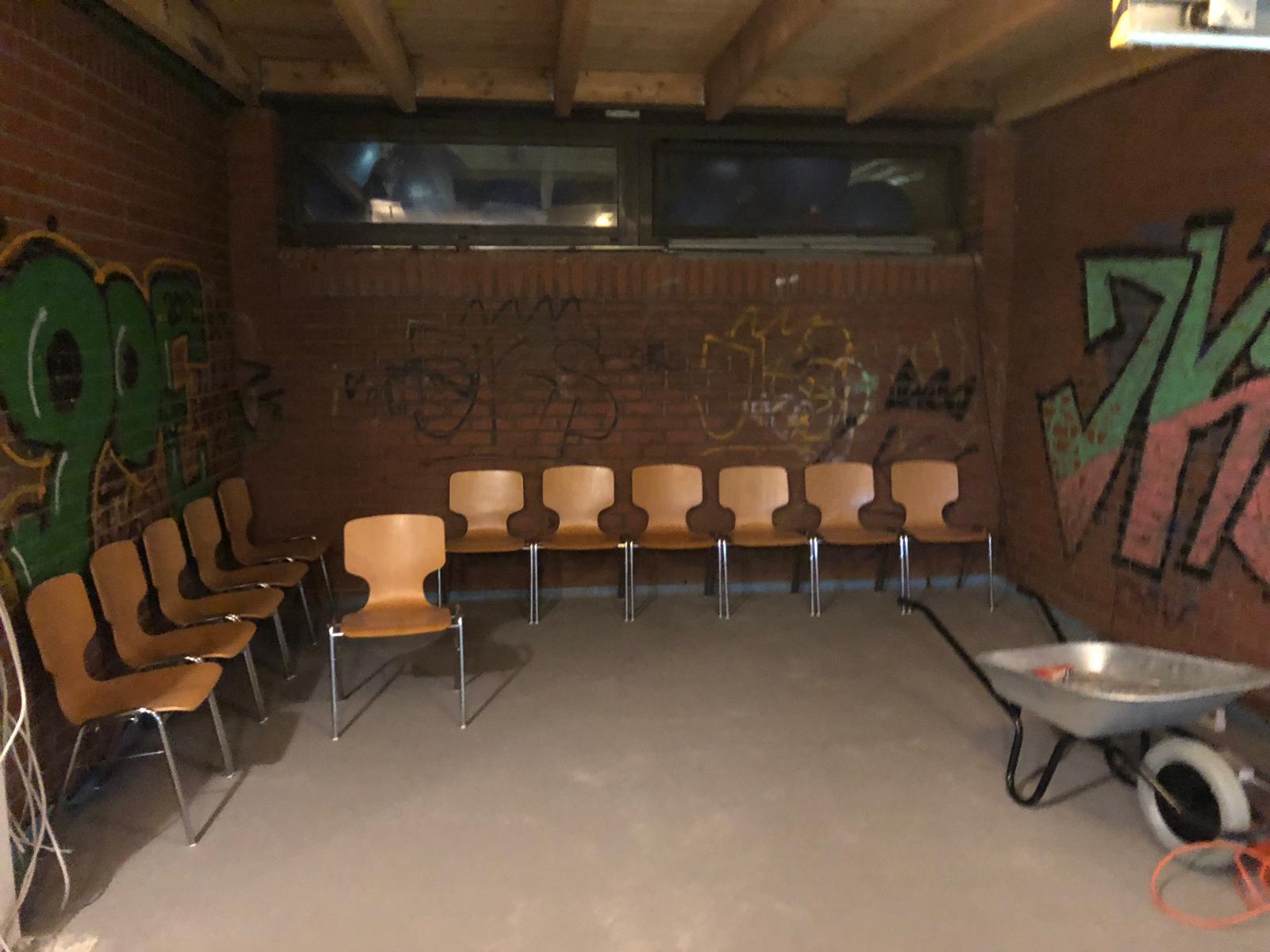 Verschiedenes «zurück zum AlbumUmbau Anbauraum Der Raum am Anfang, ein echtes Chaos!Alles in die Halle räumen.Zum Ausräumen gab es etwas WM der World-Roller-Games per Beamer.Fast ausgeräumt.Bald ist alles raus.kleinerer Anbauraum, leer mit neuer Fußbodenfarbe.Leerer Raum mit frisch gestrichenem Fussboden.Andere Perspektive.Der zweite Teil des Raumes.Das Geländer wird jetzt aufgehängt.Beim Einräumen, mehr sortiert und geordnet.Schon mal Träger für das neue Schuhregal.So könnte unsere neue Ersatz-Kabine aussehen ...Weiße Wände sehen schöner aus als Grafitti auf der alten Steinwand.Fleißig beim Streichen.Der kleine Raum wurde gestrichen und bekam Regale mit Garderobenhaken.Notkabine mit gestrichenen Wänden.Das neue Schuhregal ist fertig.Schön Rollergames schauen.Das neu gemalte Bison-Logo.Auch die Bänke wurden restauriert.Frisch abgeschliffen und beim bemalen.Neu gefärbt, schön in Vereinsfarben.Die Bänke wurden gestrichen.Die fertigen Stangen ziehen wieder nach draußen.